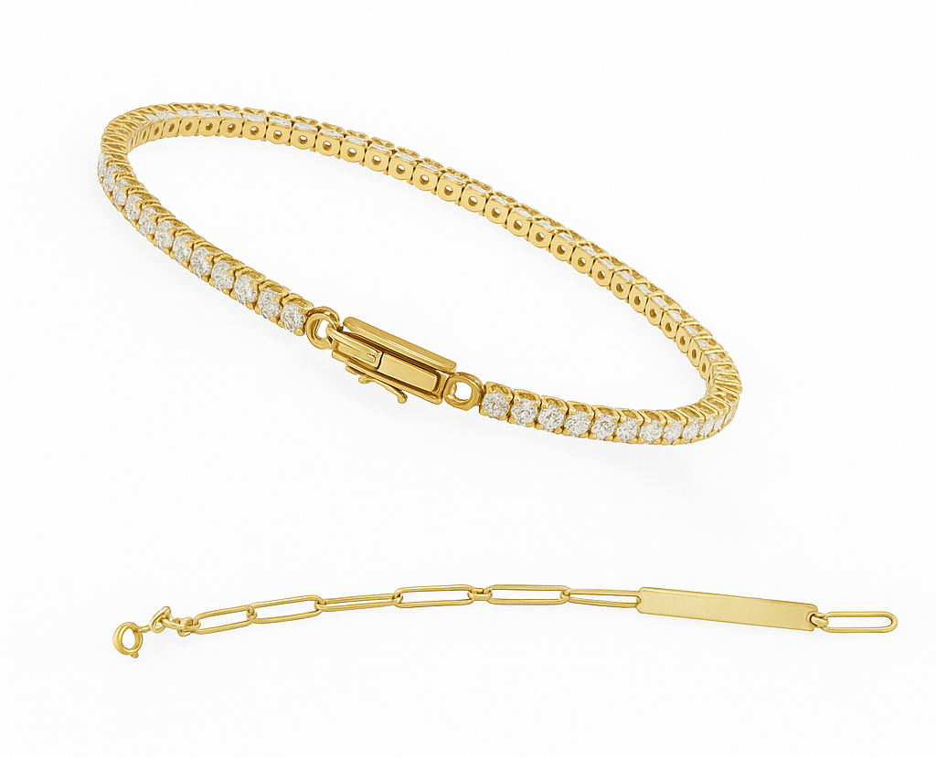 Layer them, gift them, or wear a signature piece every day. Available in yellow, white, and rose gold, our bracelets include engravable options, gemstone accents, and contemporary chain links for every personal style.